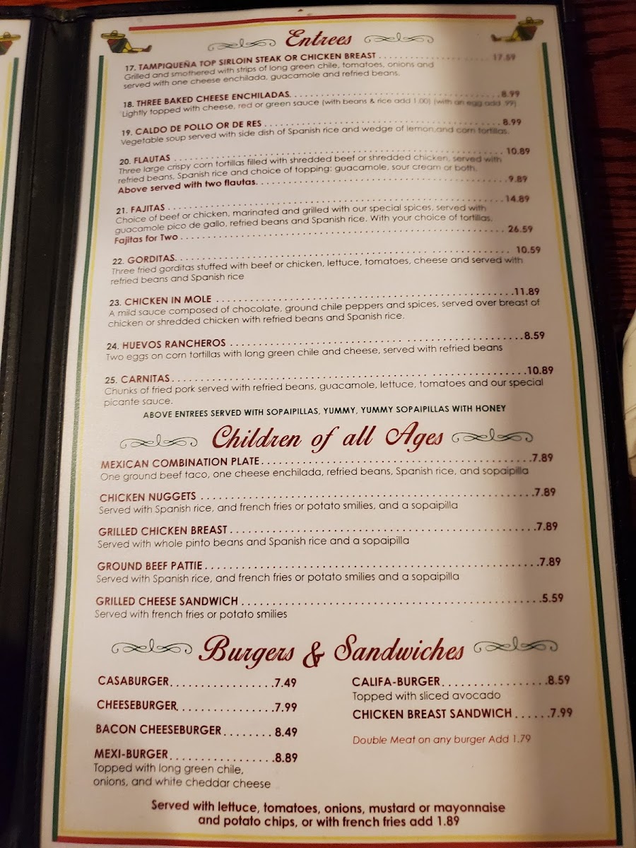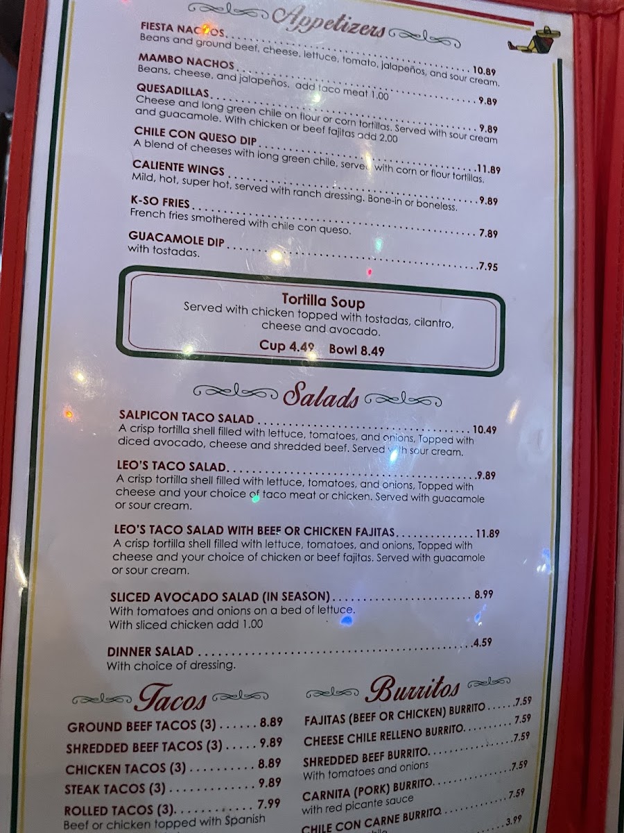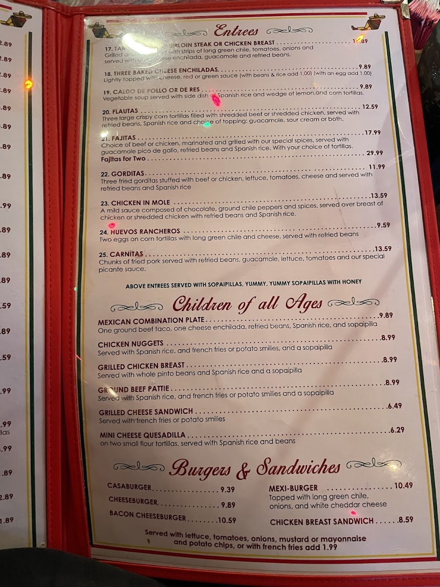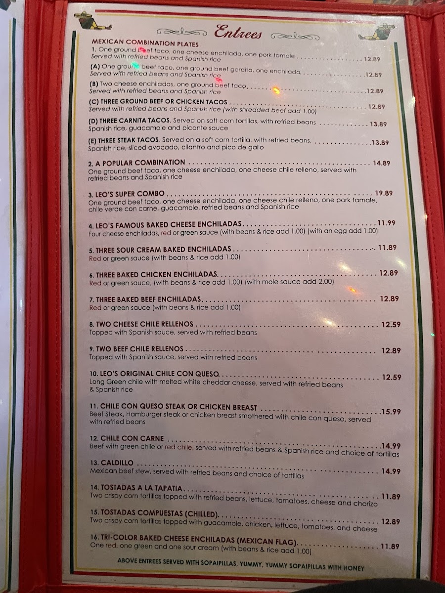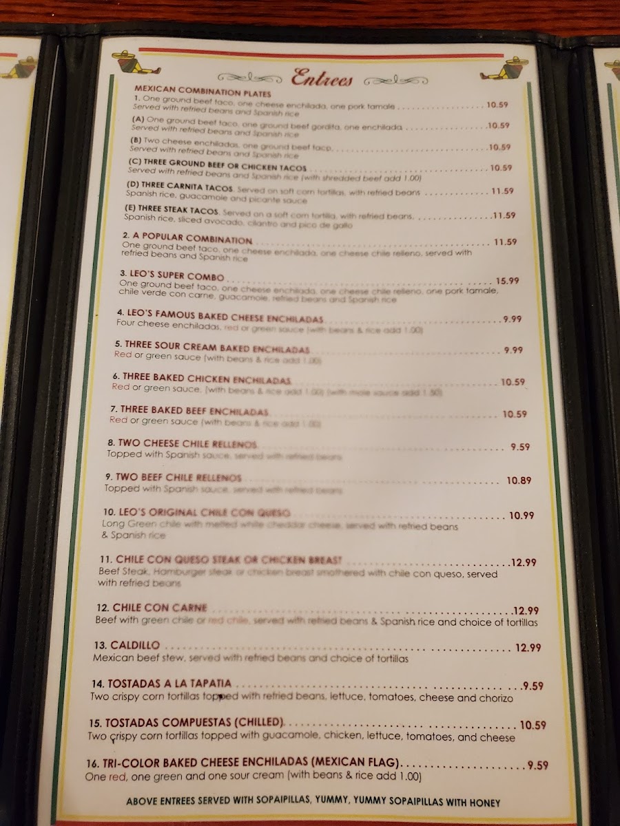cheese quesadillas with long green chile on flour tortillas, beef flautitas, caliente wings, bean & cheese nachos served with sour cream, and guacamole
