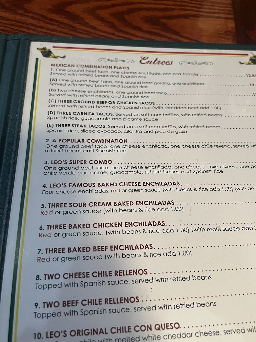 one ground beef taco, one cheese enchilada, one cheese chile relleno, served with refried beans and spanish rice
